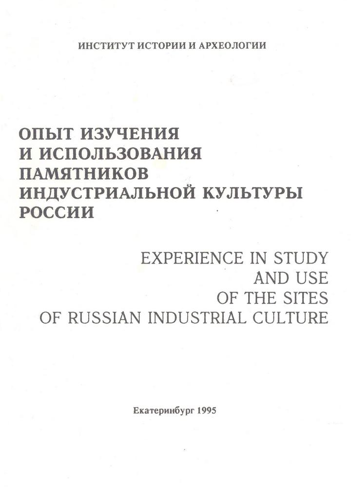 | Библиографическое описание | Опыт изучения и использования памятников индустриальной культуры России = Experience in Study and Use of the Sites of Russian Industrial Culture. Екатеринбург: БКИ, 1995. 176 с. |