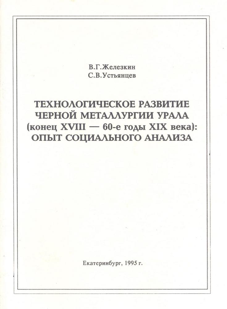 | Библиографическое описание | Железкин В. Г. Технологическое развитие черной металлургии Урала (конец XVIII - 60-е годы XIX века): опыт социального анализа / В. Г. Железкин, С. В. Устьянцев. Екатеринбург: БКИ, 1995. 60 с. |