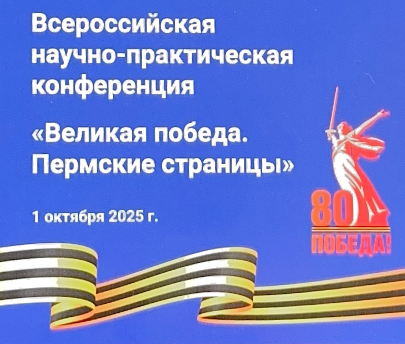 1 октября 2025 г. в административном центре Пермского края городе Перми, на площадке Пермского научно-исследовательского политехнического университета прошла Всероссийская научно-практическая конференция «Великая Победа. Пермские страницы», посвященная 80-летию Победы в Великой Отечественной войне и вкладу в ее достижение пермяков.