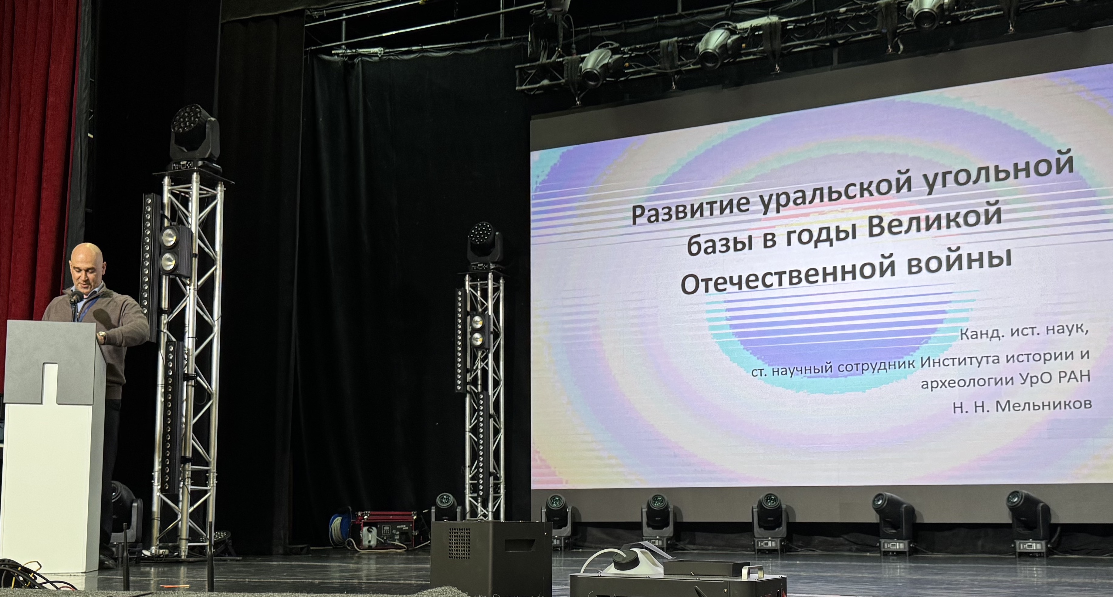 В пленарном докладе старшего научного сотрудника, к.и.н. Н.Н. Мельникова «Развитие уральской угольной базы в годы Великой Отечественной войны» внимание акцентировалось на том, что, несмотря на свою низкокалорийность, уральский уголь успешно использовался в военный период для оптимизации топливного потребления, железнодорожных перевозок и производства электроэнергии. Это позволяло поддерживать деятельность оборонных предприятий на необходимом уровне.