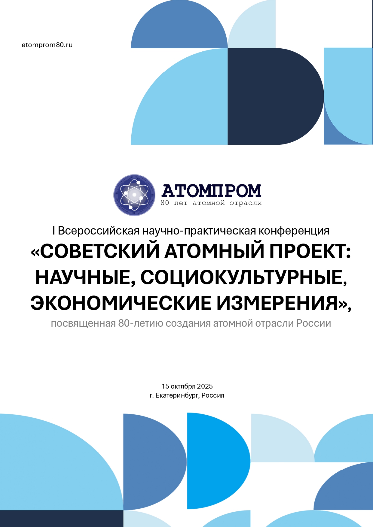 15 октября 2025 г. в Уральском Федеральном университете имени первого Президента РФ Б.Н.Ельцина состоялась Первая Всероссийская научно-практическая конференция, посвященная 80-летию создания атомной отрасли России. СОВЕТСКИЙ АТОМНЫЙ ПРОЕКТ: НАУЧНЫЕ, СОЦИОКУЛЬТУРНЫЕ, ЭКОНОМИЧЕСКИЕ ИЗМЕРЕНИЯ.